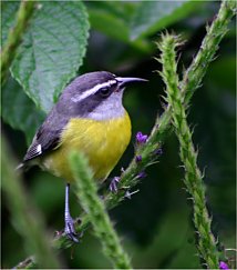 Thirty-two different plant species were used as nest sites in coffee, with the two most common plants used for nesting Inga vera and Andira inermis. Coffee trees themselves were host to 26% of the nests, many of which were of the Bananaquit (Coereba flaveola), shown here at right. However, it was the canopy trees that were the most important and harbored most of the bird species in both the coffee and forest habitats. The stunning Puerto Rican Woodpecker (Melanerpes portoricensis), an endemic species, is one example of a bird that needs mature canopy trees for nesting. These canopy trees, of course, would not be present in sun coffee plantations, and the authors emphasize that it is the value of shade coffee plantations for preserving birds depends on the shade canopy layer, not the coffee itself.