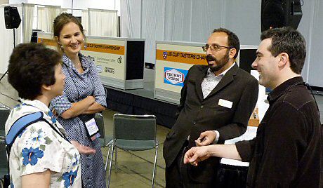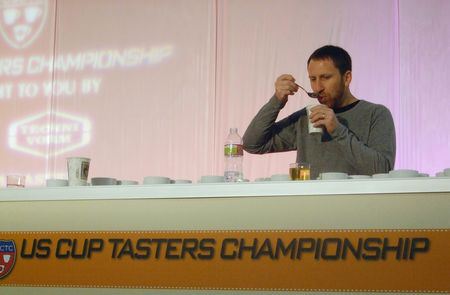 Andy competed in the U.S. Cup Tasters Championship, where he came in third place (second last year). This is a fast, fun competition where people have to pick the odd coffee out of eight flights of three cups. We found it more enjoyable to watch than the U.S. Barista Championship, which is much slower and more serious.