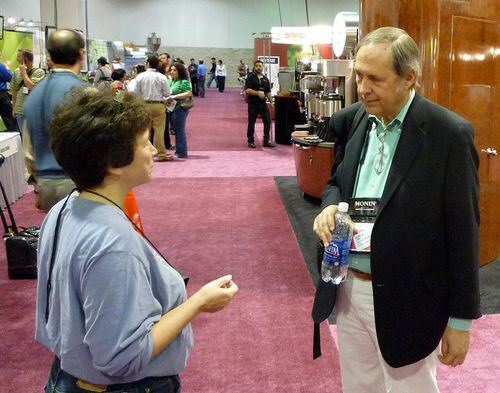 We spent some time with folks from S&D Coffee. S&D supplies some McDonald’s and other restaurants and retailers, in addition to have several of their own coffee lines. I was impressed with their concern with sustainably-grown coffee, as evidenced by my conversation with two representatives from the importer Sustainable Harvest, who were at the S&D booth making deals. I am learning more about the import/export side of specialty coffee, as well as about the larger roasters and suppliers. Expect more on these topics as I incorporate this knowledge into my posts.