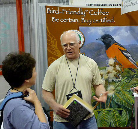 Of course, we have to stop by the Smithsonian Migratory Bird Center booth and say hi to our friend Dr./Mr. Robert/Bob Rice (inside joke), who runs the Bird-Friendly certification program. Aside from Andy Sprenger, there aren’t too many people at these events with whom we can talk coffee AND birds.