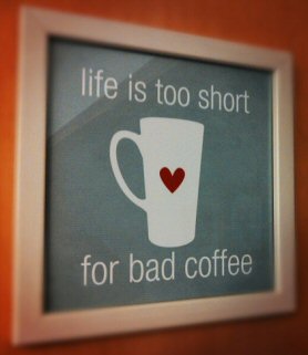 Yes, I’m still around. The last few months I have been not only busy with my real job, but also with buying a house, moving, and selling the old homestead. I’ve still been thinking about (and drinking) coffee; the print on the right is one of the first items I hung in the kitchen in the new abode.